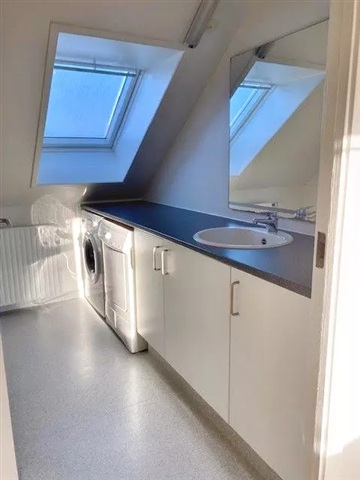 Lys 2-værelses taglejlighed på 51 m2 med synlige bjælker og egen vaskemaskine og tørretumbler