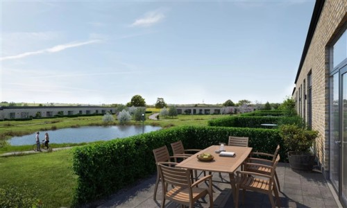 Nybygget rækkehus i ét plan med terrasse og parkeringsplads